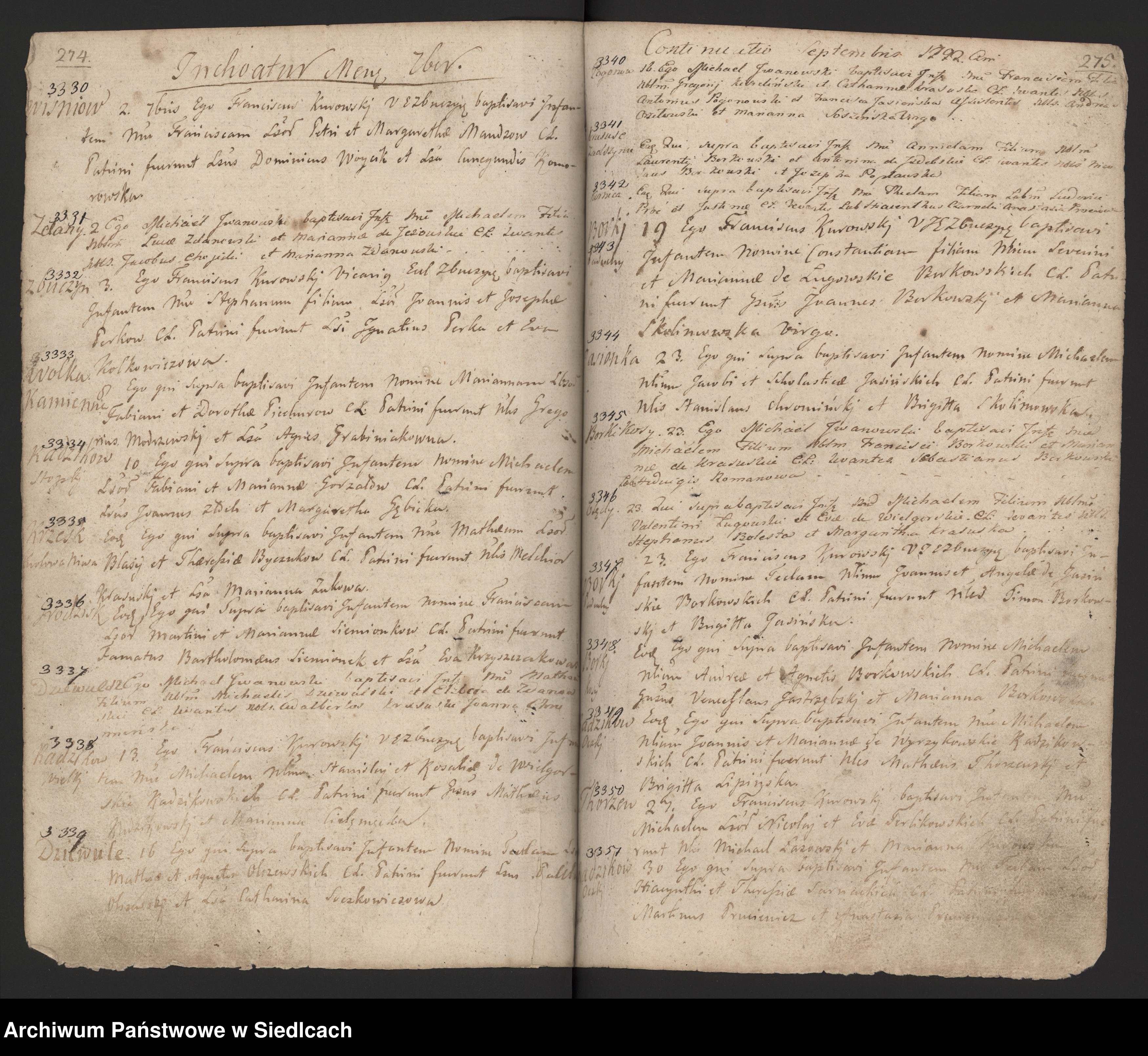 3. Michał UR 1792 w Jasionce. Chrzest z dnia 1792-09-23 - wpis nr 3344 w księdze chrztów parafii Zbuczyn z lat 1781-1800.