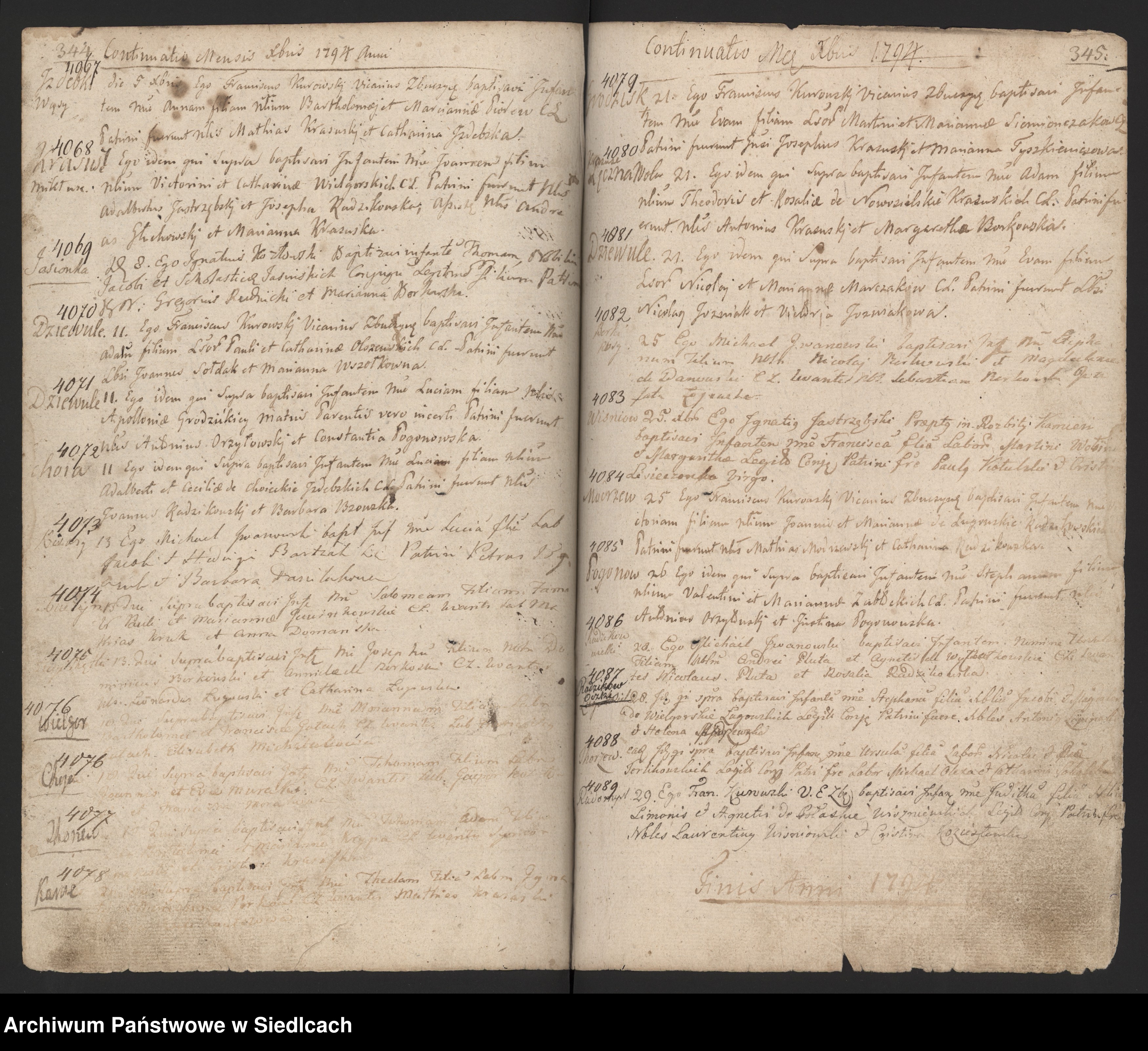 4. Tomasz UR 1794 w Jasionce. Chrzest z dnia 1794-12-08 - wpis nr 4069 w księdze chrztów parafii Zbuczyn z lat 1781-1800.