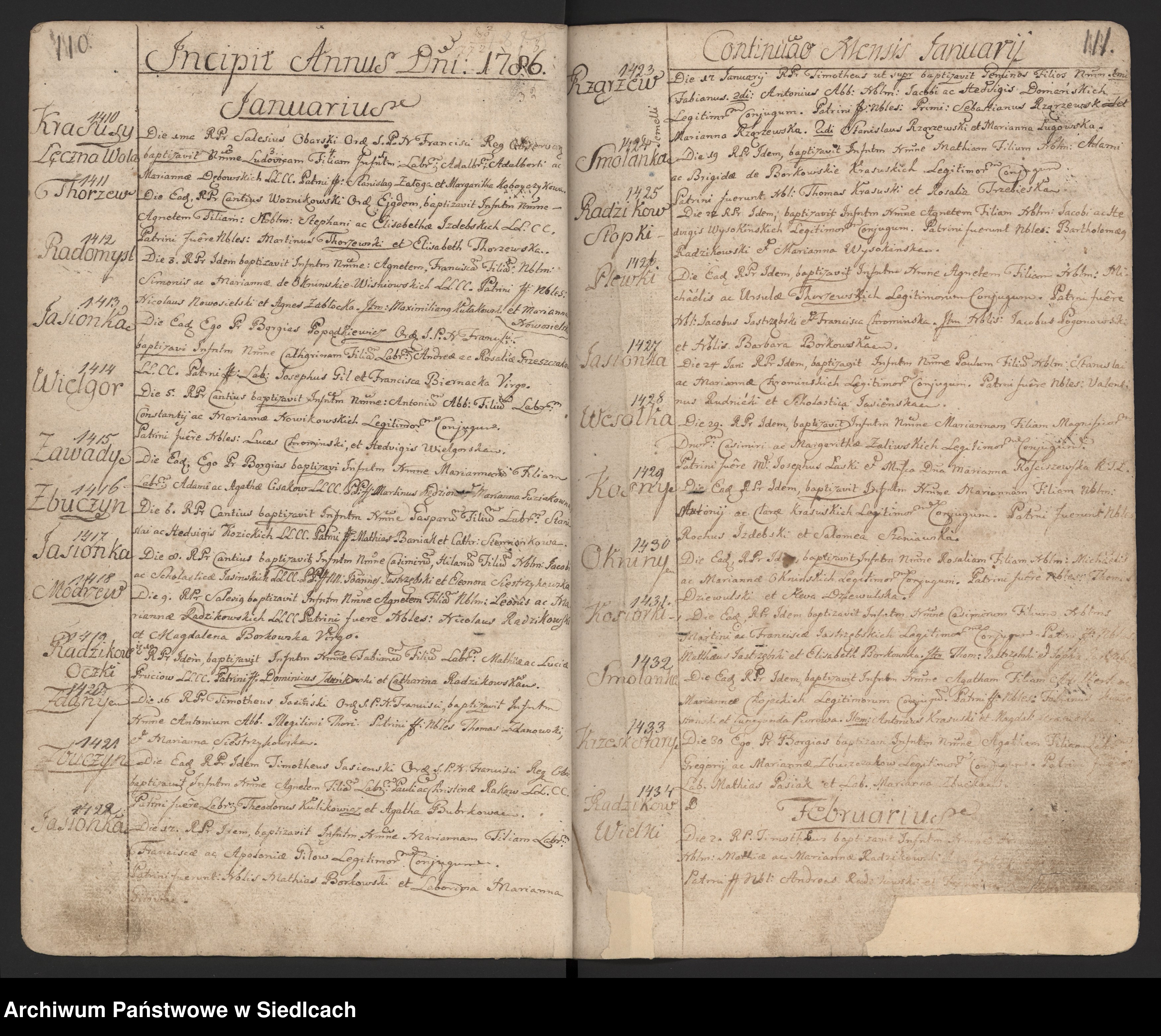 1. Kazimierz Hilary UR 1786 w Jasionce[niewymieniony w powyższym drzewie]. Chrzest z dnia 1786-01-08 - wpis nr 1417 w księdze chrztów parafii Zbuczyn z lat 1781-1800. Kazimierz wziął ślub 1824-02-02 w parafii Borowie w powiecie garwolińskim z Franciszką Tołwińską UR 1803 w Starej Hucie w parafii Osieck(chrzest 1803-06-26), córką Grzegorza i Teresy Kowalskiej. We wpisach z parafii Borowie Kazimierz jest określany jako podstarości i karbowy w folwarkach Borowie i Brzoza. Kazimierz i Franciszka mieli 4 dzieci urodzonych w parafii Borowie: Zuzannę Aleksandrę UR 1824, Ludwika UR 1826, Klementynę Katarzynę UR 1827, Teofilę UR 1830. Kazimierz występuje w roku 1830 w notariacie siedleckim i sprzedaje (skan 1, skan 2) swoje części w Jasionce i okolicy swoim braciom Michałowi i Tomaszowi oraz kwituje odbiór zapłaty (skan 1, skan 2). Po roku 1830 tak on, jak i jego żona i dzieci znikają z kart parafii w Borowiu. Niestety nie odnalazłem tej rodziny nigdzie indziej w późniejszych latach.